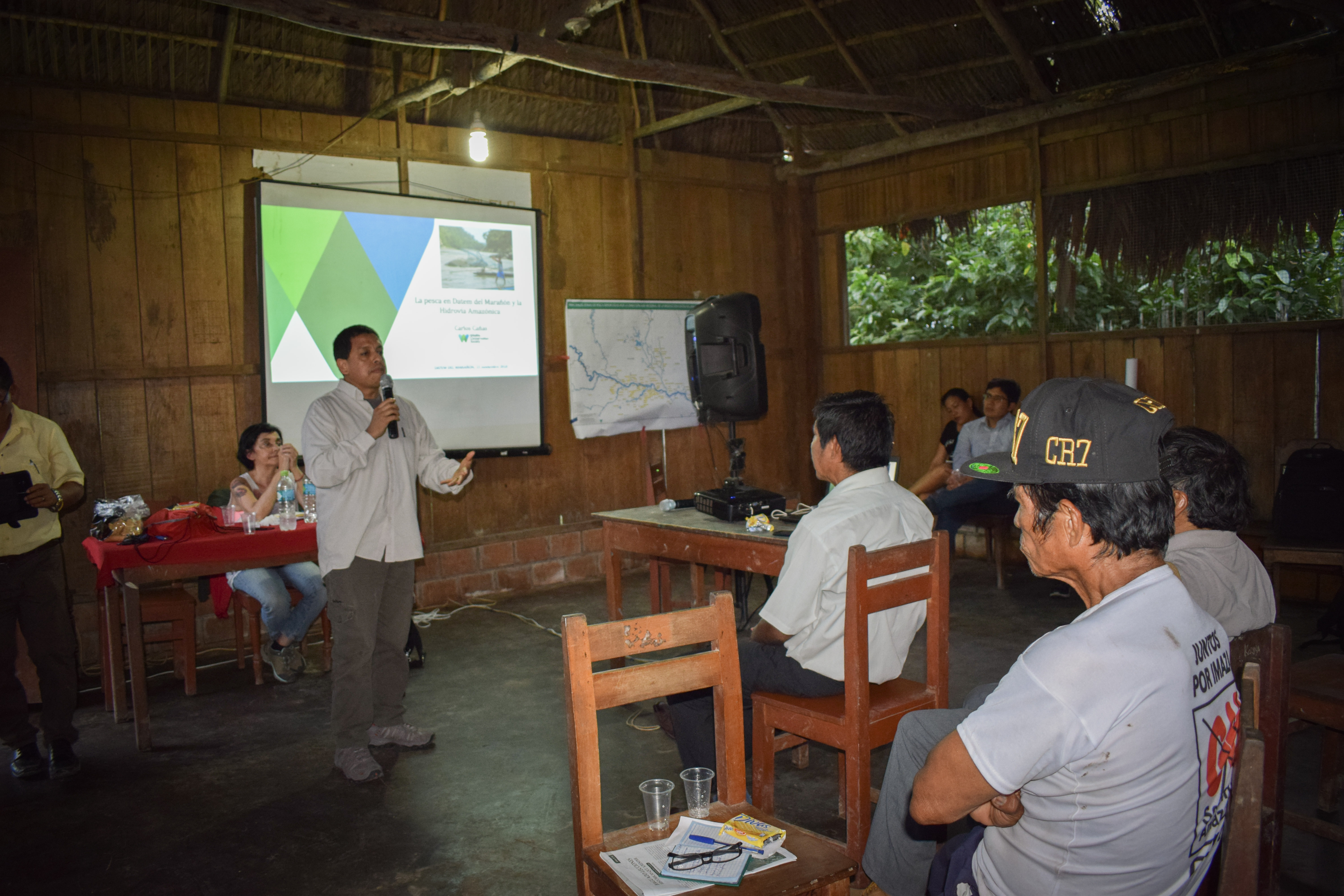 El pasado 16 y 17 de noviembre, en las localidades de Saramiriza y San Lorenzo, provincia Datem del Marañón, Loreto, se realizaron dos reuniones informativas presentando los resultados de los estudios que WCS y UTEC llevaron a cabo en zonas designadas para ser dragadas como parte del proyecto Hidrovía Amazónica.