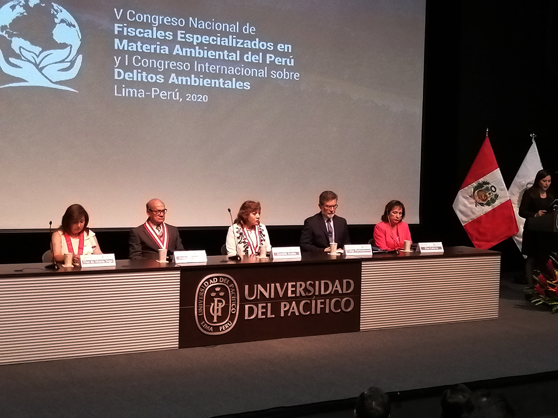 La ceremonia de inauguración del I Congreso Internacional sobre Delitos Ambientales y V Congreso Nacional de Fiscales Especializados estuvo a cargo de la Dra. Zoraida Ávalos, Fiscal de la Nación, la Dra. Flor de María Vega, Fiscal Superior Coordinadora Nacional de la FEMA y el Dr. Felipe Portocarrero, rector de la Universidad del Pacífico, con la participación de autoridades gubernamentales, representantes de agencias de cooperación –entre ellas la delegación de Unión Europea en Perú- y organizaciones de la sociedad civil.