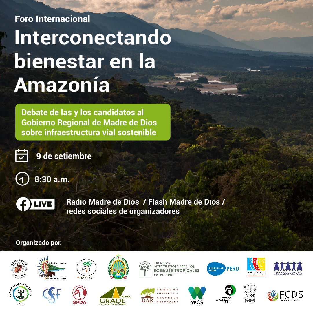 Este foro se constituye como un importante espacio que permitirá que las y los candidatos al Gobierno Regional de Madre de Dios presenten y debatan sus propuestas respecto a la interconexión entre los pueblos amazónicos.
